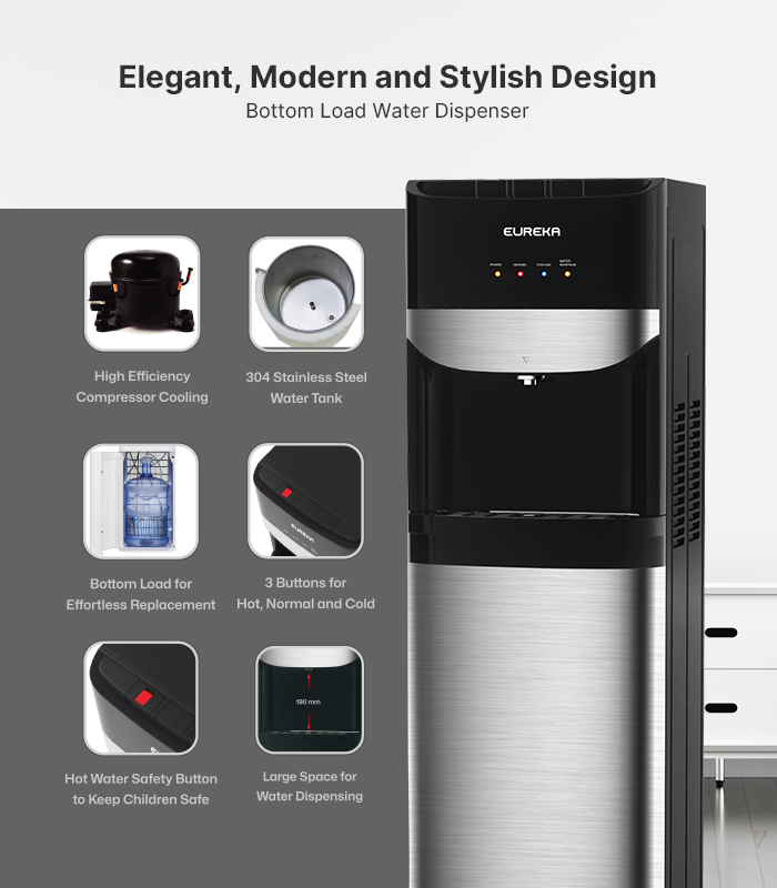 Upgrade your hydration game with Eureka EWD BL SB Bottom Load Water Dispenser. Designed for convenience and elegance, this dispenser offers the perfect solution for your home or office.